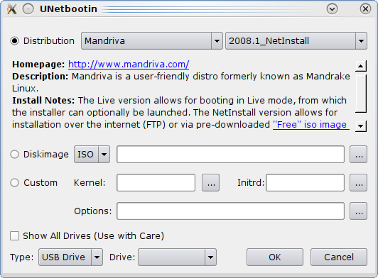 Actualmente, digo actualmente porque ya hay un articulo relacionado a esta aplicación en PuntoGeek que data del año 2007, Unetbootin soporta las siguiente distribuciones: Ubuntu, Fedora, openSUSE, CentOS, Debian, Linux Mint, Arch Linux, Mandriva, Slackware, Elive, Dreamlinux, Puppy Linux, gNewSense, entre muchas otras mas. Además, Unetbootin soporta varias utilidades de sistema como: Parted Magic, SystemRescueCD, Super Grub Disk, FreeDos, Smart Boot Manager, Dr Web Antivirus, entre muchas otras mas. Para ver el listado completo de las distribuciones y aplicaciones de sistema soportadas, pueden visitar la web oficial del proyecto.