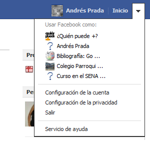 Además Facebook incluye unas pequeñas opciones más, se trata de intercambiar el perfil por el de nuestras páginas, para tener más opciones en la administración o hacerlas más personales. Les dejo una imagen de mi propio perfil: