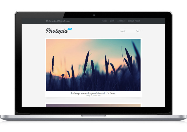 Photopia es un nuevo tema gratuito para WordPress creado específicamente para fotógrafos, pues permite incrustar fotografías de hasta 940px de ancho en cada uno de los posts, tristemente no es Responsive, algo muy buscado en todos los temas hoy en día, en este caso no es tan importante, todos quieren apreciar tus fotografías en su máxima calidad.