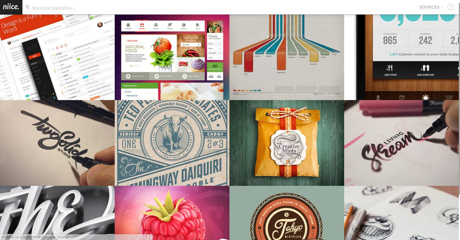 Niice se autodenomina un buscador de inspiración, nació de la necesidad de agregarle un «buen gusto» a las búsquedas de Google y así evitarse la navegación en blogs y sitios web que se dedican a hacer recopilaciones de los mejores diseños que existen en la red.