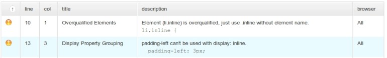 Así pues, agrupará todo lo malo que encuentre en una tabla fácil de consultar, que incluye el error, la importancia, en qué línea se encuentra, en qué columna, y la descripción de este.