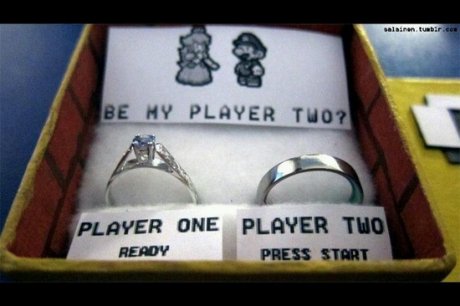 Como parte de ese estilo de vida, los geeks utilizan sus gustos en todo lo que hacen y la ocasión para proponer matrimonio a su amada, sea geek o no, no es la excepción, a continuación les muestro una lista con las más originales formas de pedir matrimonio por parte de un geek que desea conquistar a su propia princesa Peach: